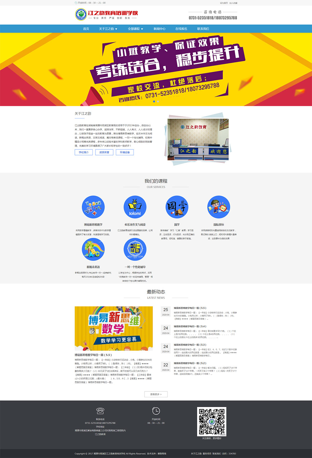 江之韻教育是在湖南省湘潭市雨湖區(qū)教育局的領(lǐng)導(dǎo)下,由湖南省優(yōu)秀青年企業(yè)家張建于2013年創(chuàng)辦。江之韻教育堅持“良心辦學(xué)、誠信治學(xué);一切為了學(xué)生,為了學(xué)生一切”為辦學(xué)理念;以人為本,通過專業(yè)服務(wù)全方位提升學(xué)生的綜合素質(zhì) ,通過專業(yè)咨詢?nèi)珜W(xué)科提供學(xué)生的選擇機會,通過針對培訓(xùn)全層次保障學(xué)生的升學(xué)成績;江之韻教育教學(xué)培訓(xùn)服務(wù)、教育咨詢服務(wù)、教研產(chǎn)品研發(fā)為一體,開展的業(yè)務(wù)主要有精品化小班教學(xué)、放學(xué)托管、中小學(xué)高端個性化輔導(dǎo)業(yè)務(wù)、藝考文化培訓(xùn)、體驗式戶外素質(zhì)拓展訓(xùn)練等項目。