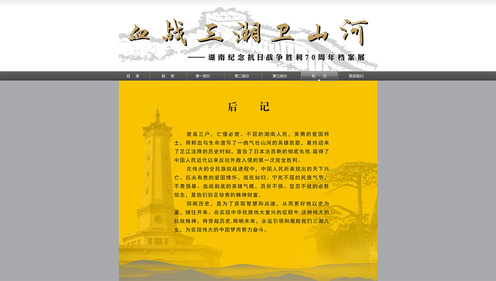 血戰(zhàn)三湘衛(wèi)山河 - 湖南紀念抗日戰(zhàn)爭勝利70周年檔案展