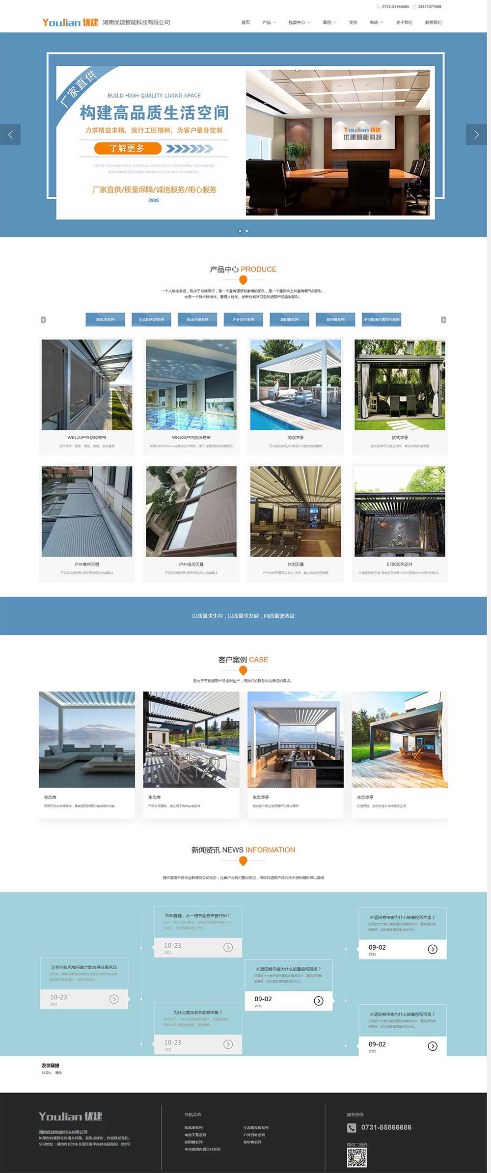 湖南優(yōu)建智能科技有限公司是一家集建筑節(jié)能、遮陽、裝飾材料、金屬門窗的開發(fā)、設(shè)計、生產(chǎn)、銷售、安裝于一體的創(chuàng)新型建筑遮陽企業(yè)。我們致力于為客戶構(gòu)建愜意、舒適、節(jié)能的高品質(zhì)生活空間。主營產(chǎn)品包括:防風卷簾、戶外防水百葉、卷簾門窗、遮陽棚、中空內(nèi)置百葉、遮陽布藝等,有多種控制方式供不同的應(yīng)用場景選擇。