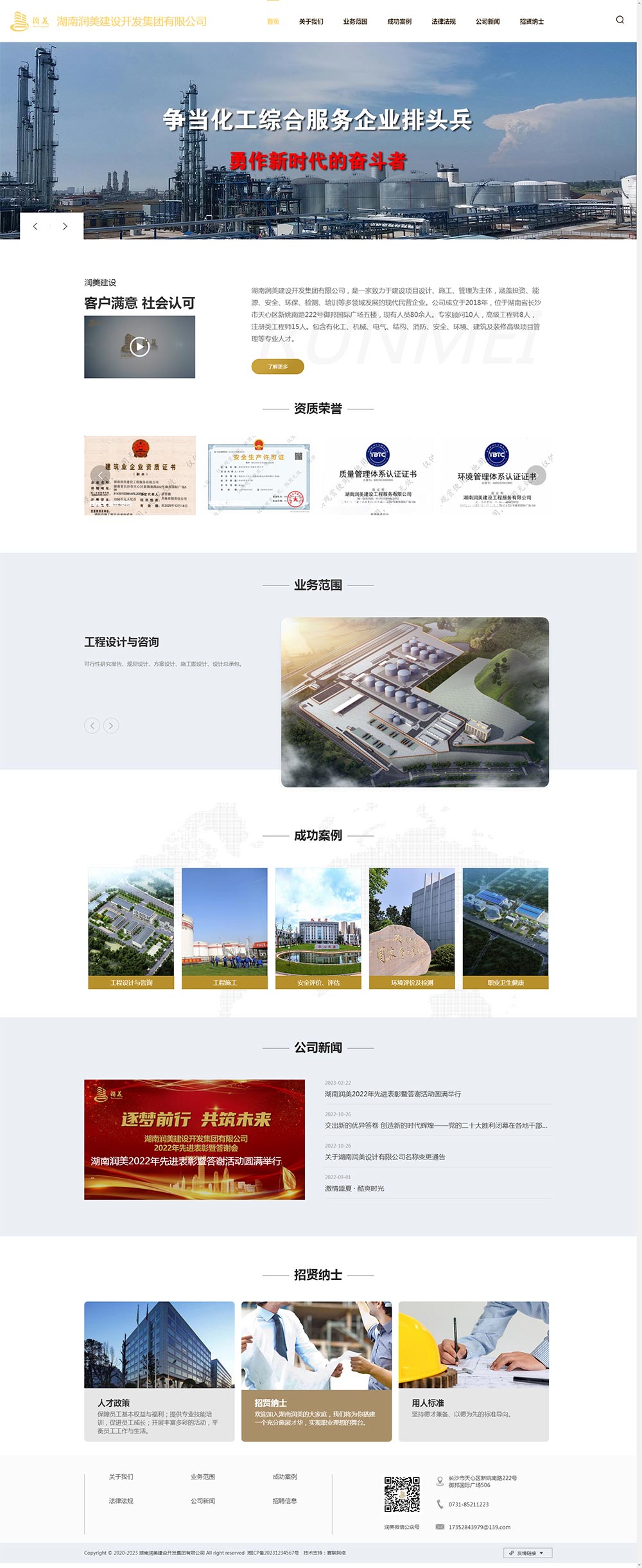 湖南潤美建設開發(fā)集團有限公司,是一家致力于建設項目設計、施工、管理為主體,涵蓋投資、能源、安全、環(huán)保、檢測、培訓等多領域發(fā)展的現(xiàn)代民營企業(yè)。公司成立于2018年,位于湖南省長沙市天心區(qū)新姚南路222號御邦國際廣場五樓,現(xiàn)有人員80余人。專家顧問10人,高級工程師8人,注冊類工程師15人。包含有化工、機械、電氣、結構、消防、安全、環(huán)境、建筑及裝修高級項目管理等專業(yè)人才。