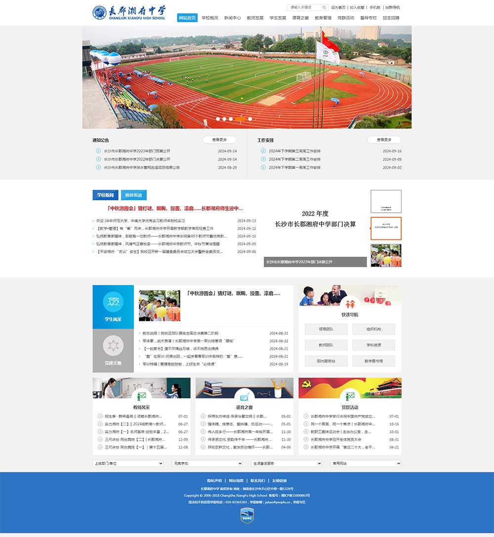 湖南省長沙市長郡湘府中學是長沙市教育局布局在省府南城長株潭核心區(qū)域內(nèi)一所現(xiàn)代化、標準化、花園式窗口型完全中學,學校創(chuàng)辦于1956年,占地面積110畝,現(xiàn)有教職員工290余名,在校學生3800余名。學校歷經(jīng)六十余年滄桑變化,不忘教育初心,孕育湖湘英才。