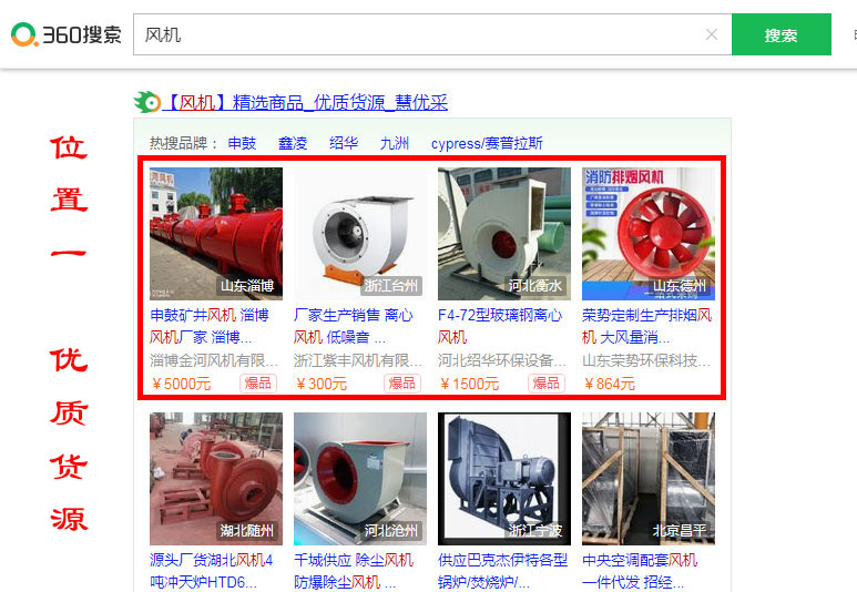慧優(yōu)采“爆品”,它是慧聰 和 360搜索聯(lián)合助推行業(yè)“爆品”, 365天*24小時(shí)全時(shí)段、PC端和移動(dòng)端全終端,全國不限區(qū)域投放,在360首頁的“優(yōu)質(zhì)貨源”和“優(yōu)選廠商”雙位置展示:產(chǎn)品+品牌+公司信息,且標(biāo)注為“爆品”,并贈(zèng)送360-采購頻道前4位全年展示。
