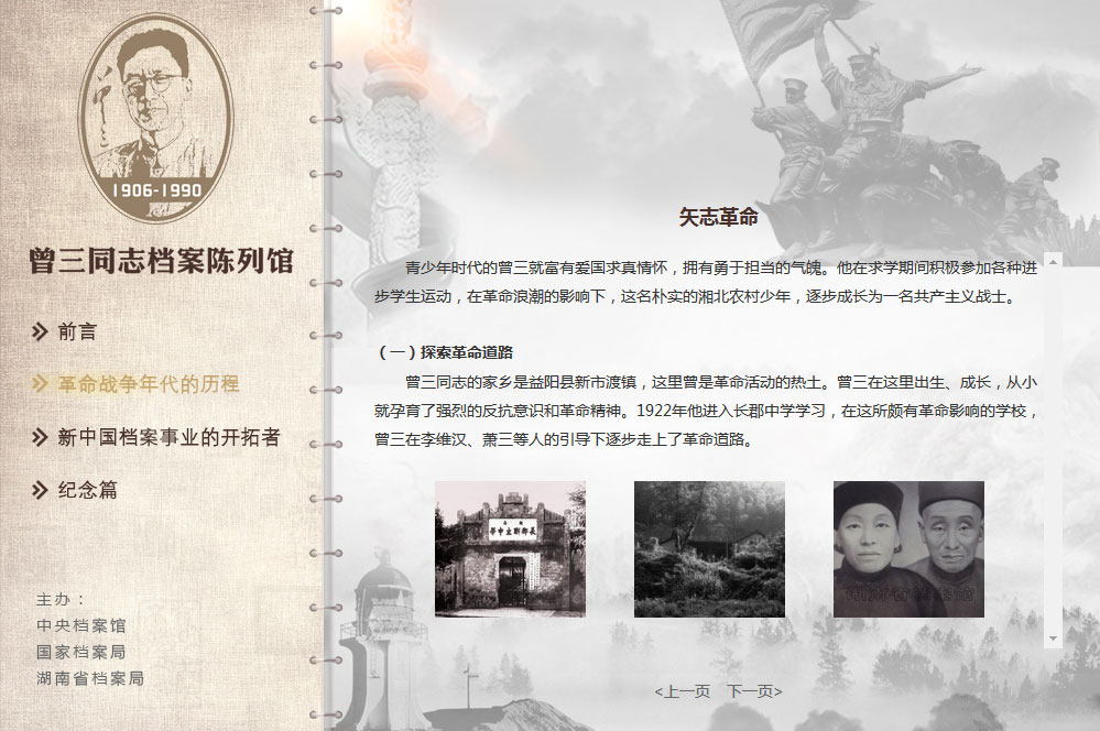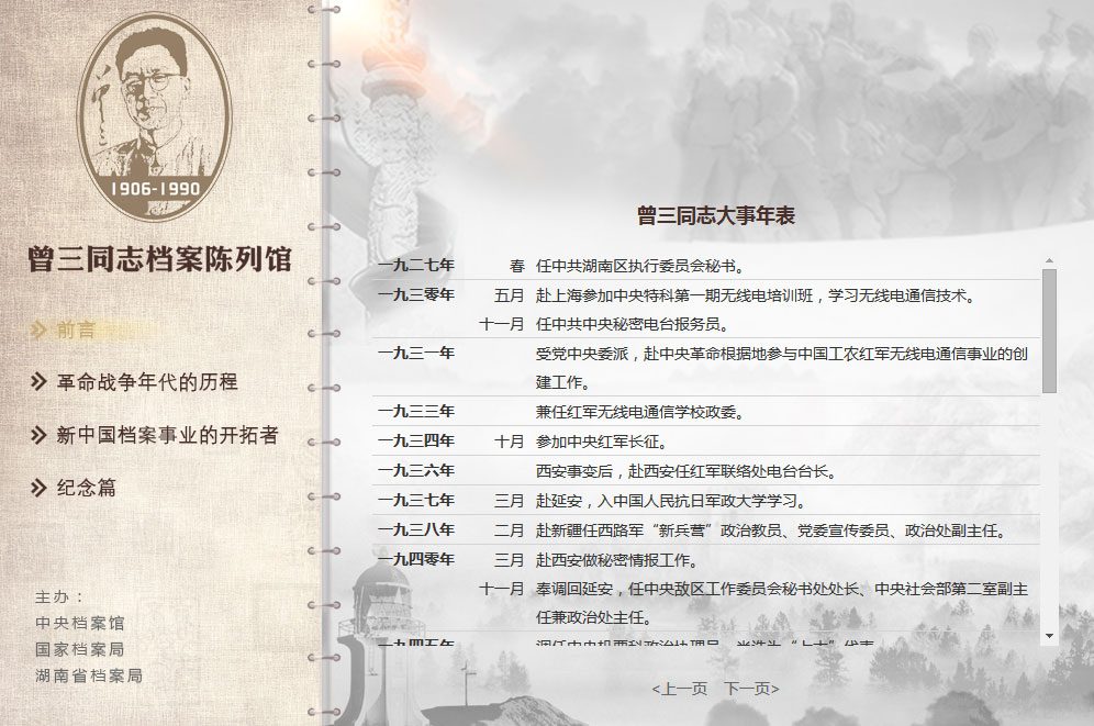 湖南省檔案局(館)《曾三同志檔案網(wǎng)上陳列館》項(xiàng)目上線!http://sdaj.hunan.gov.cn/wszt/