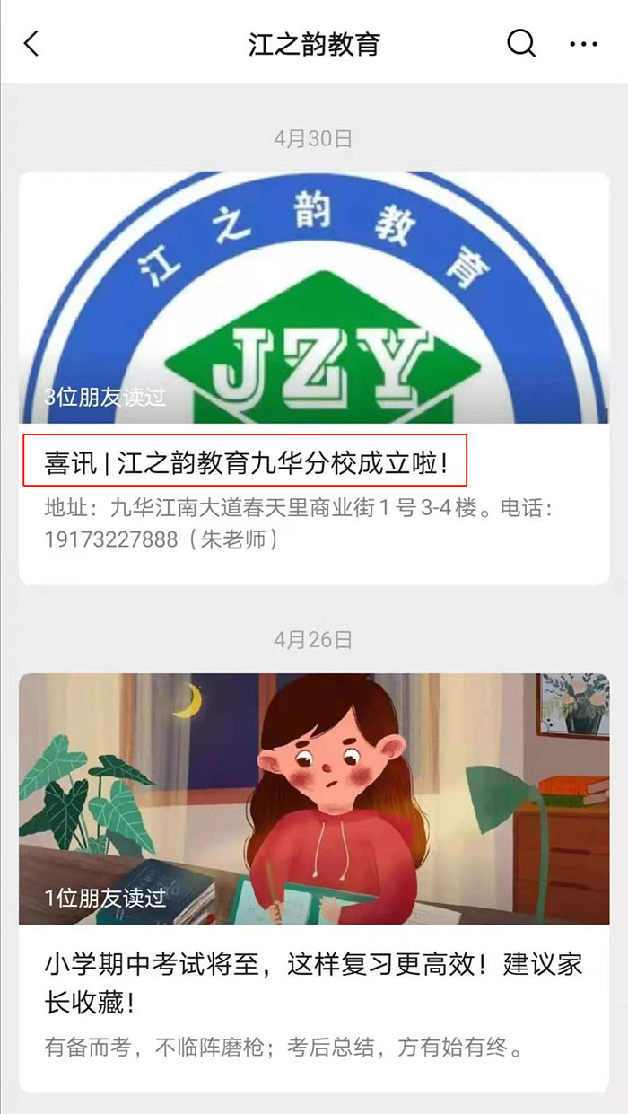 客戶喜訊:江之韻教育九華分校成立啦!
