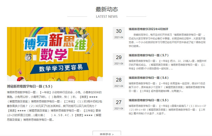 與江之韻的合作,始于2017年,四年間,見(jiàn)證他們穩(wěn)扎穩(wěn)打、開(kāi)疆拓土:從最初的風(fēng)車坪校區(qū)小學(xué)部,到風(fēng)車坪校區(qū)初高中部,再到現(xiàn)在九華分校成立。官網(wǎng)上能看到穩(wěn)定更新的“新思維每日一題”,這也成為孩子日常學(xué)習(xí)中必備的打卡事情。