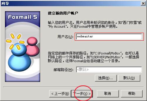 3、輸入自己的用戶名(如webmaster),接著按"下一步",界面如下: