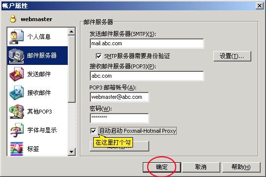 9、在"自動(dòng)啟動(dòng)Foxmail-hotmail Proxy"選項(xiàng)前打個(gè)勾,單擊〈確定〉,至此為止,F(xiàn)oxmail新建郵箱的設(shè)置已經(jīng)完成。